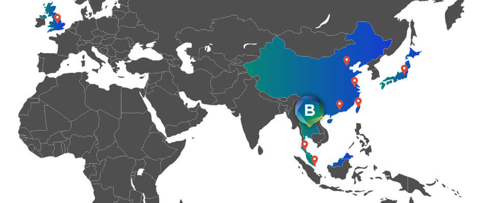 越南、泰國、馬來西亞、新加坡、英國、日本、香港、北京、上海、台灣