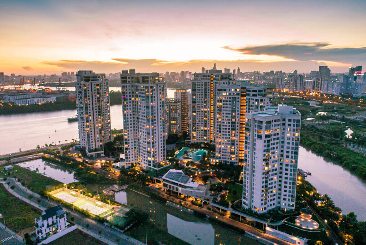 Diamond Island is a luxury apartment project located on the only isolated island in District 2, surrounded by 4 rivers to create a great living space and full of privacy. Diamond Island is planned on a total area of 79,944.6m2, the total construction density accounts for about 13.5%, the remaining 86.5% is the density for green areas and public areas.