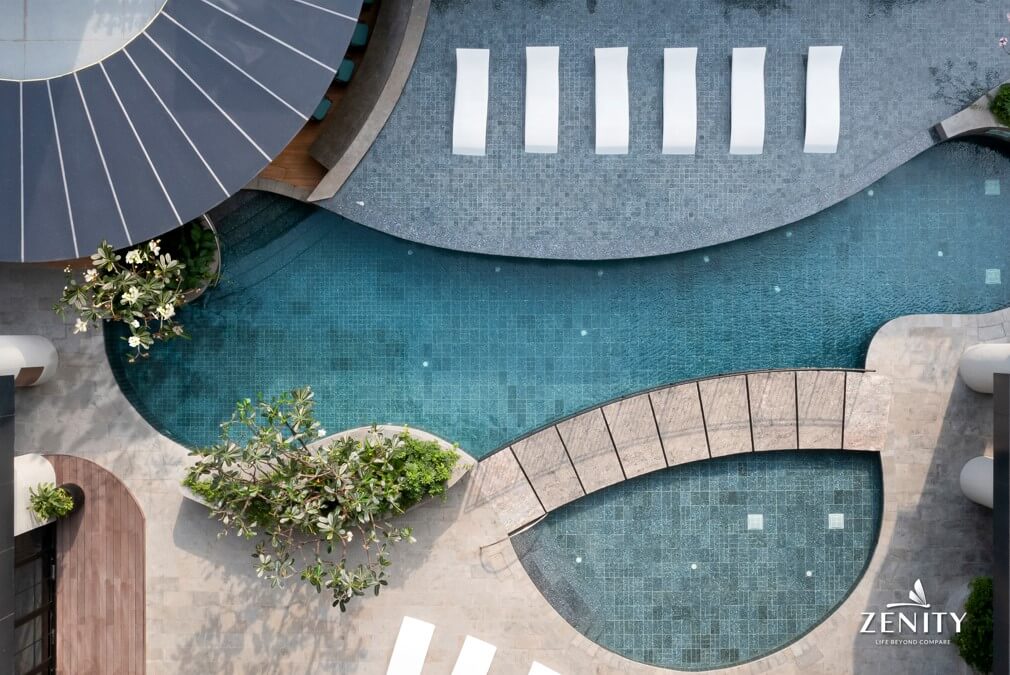 Zenity CapitaLand apartment project owns a resort-style high-class utility system, creating a peaceful and peaceful living space. A series of relaxation – entertainment complexes can be mentioned as: Co-working room, Gym, Banquet room, Great hall garden, Zen garden, Lagoon pool, Bar, poolside relaxation area, Relaxation chairs, Oasis arch jacuzzi…