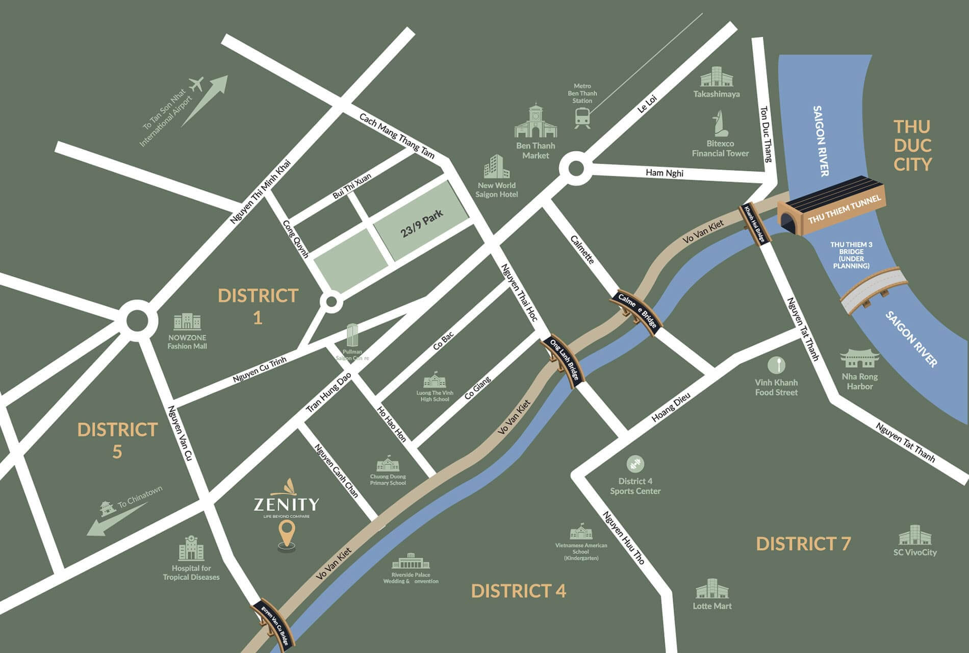 Zenity CapitaLand project is located on Vo Van Kiet Avenue, District 1 – the heart of Ho Chi Minh City, easily connected to other central districts of the city.